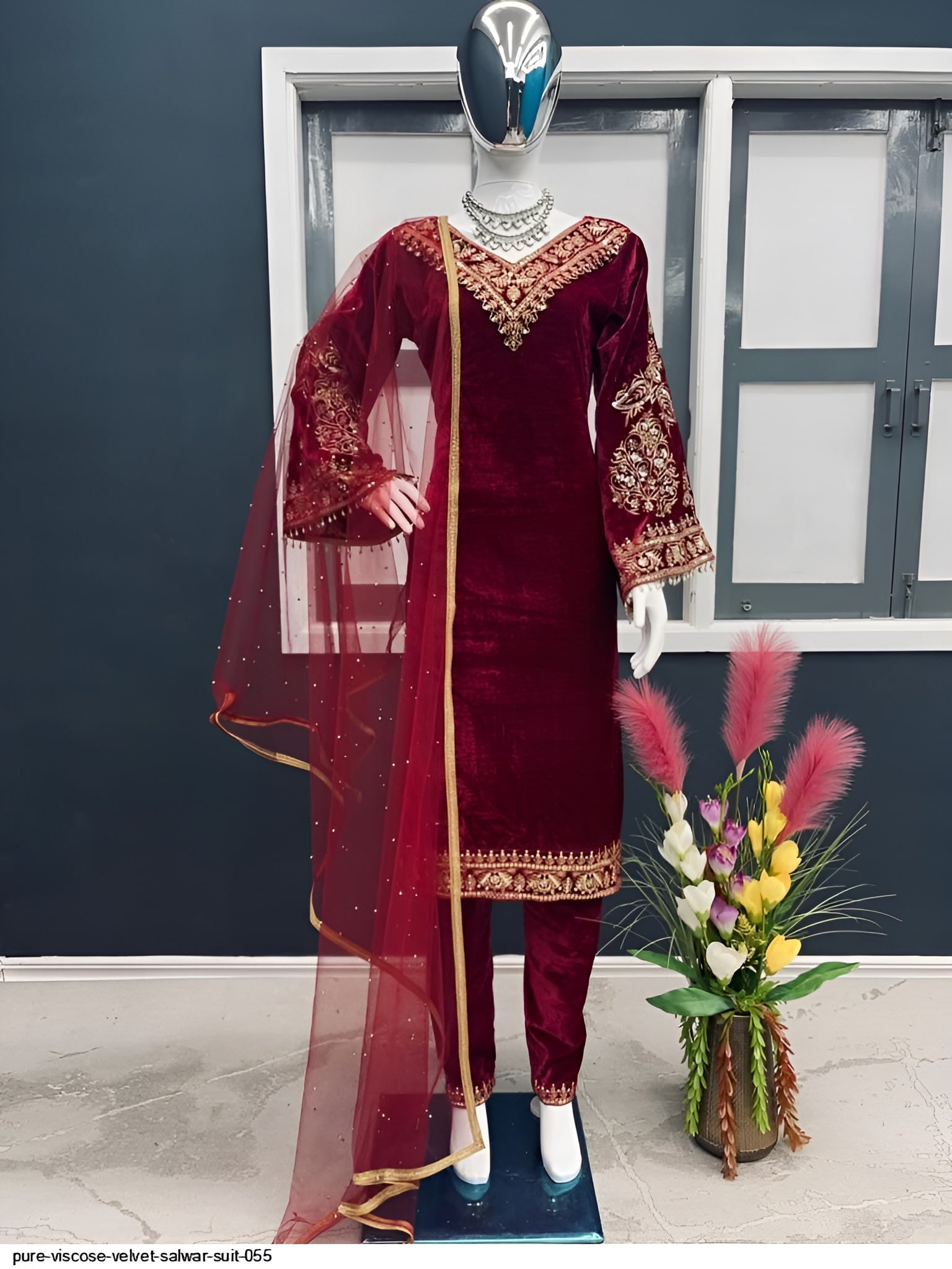 VELVET EMBROIDERED PAKISTANI SUIT WITH DUPATTA FOR WOMEN